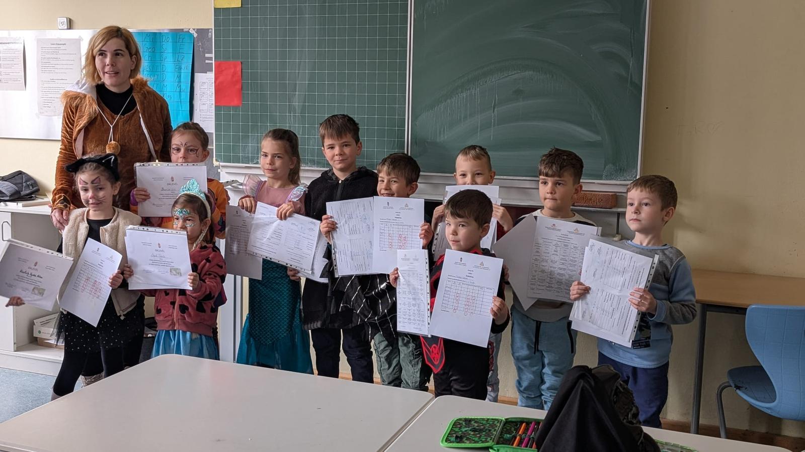 A mai nap különösen emlékezetesre sikerült, vidám farsangi hangulatban zajlott.A farsangi örömök mellett egy fontos és megható pillanatra is sor került: kiosztottuk a félévi bizonyítványokat. A gyerekek izgatottan vették át az elismerést, amely mögött komoly munka áll. Szóbeli és írásbeli vizsgákon bizonyították tudásukat, kitartásukat és fejlődésüket.